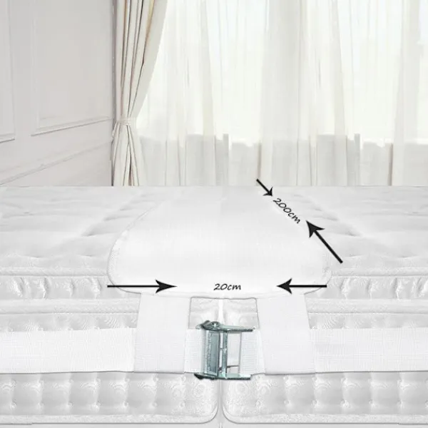 ENKEL INSTALLATION – När du behöver göra en större säng, lägg bara dina två madrasser sida vid sida. Placera sängbryggan mellan de två sängarna för att stänga gapet. Fäst sängarna tillsammans med hjälp av anslutningsremmen och voila.