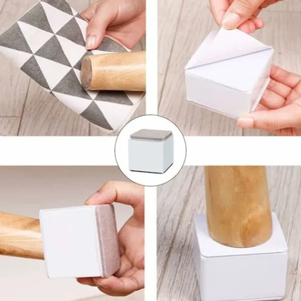 PLATSBESPARANDE: Använd självhäftande sängförlängningar för att lägga till höjd och förvaringsutrymme under sängen och möblerna, vilket gör det lättare att städa under möblerna, mycket lämpligt för mekaniska dammsugare och mycket lämpligt för att justera höjden efter dina behov. Behov.