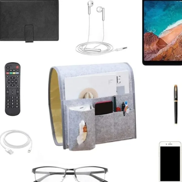 【Spara utrymme】Organisatören kan hålla alla dina saker samlade vid din sida när du ligger på sängen, soffan eller skrivbordet som har en säker och standardplats, och inga fler förlorade föremål.