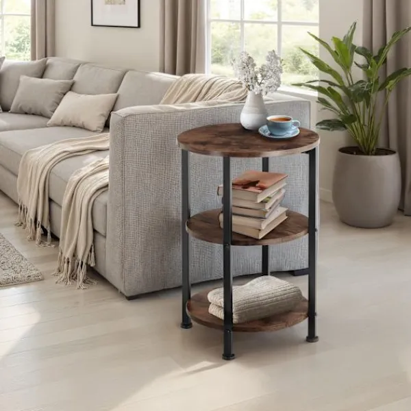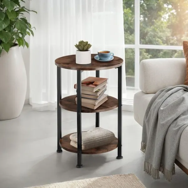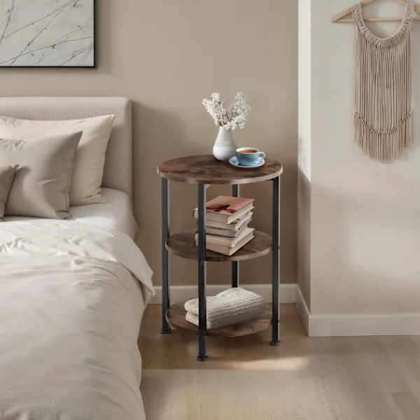 Det snygga sängbordet Colchester från tectake är en fantastisk allsidig, oavsett om det är som en praktisk hylla för alla slags vardagsföremål eller som grund för en snygg presentation. Tre nivåer ger gott om plats för designalternativ, medan den solida ramen på fyra stabila ben med höj- och sänkbara fötter ger perfekt stabilitet. Den slitstarka spånskivans yta ger också en stilren touch genom sin naturliga ådring. Visuellt är den rustika konstruktionen helt och hållet baserad på den minimalistiska industriella stilen – så den praktiska biten bildar nästan alltid en harmonisk helhet med befintliga möbler. Ett underbart tillskott till hemmets vardagsrum och arbetsrum som sidobord eller sovrummet som sängbord.