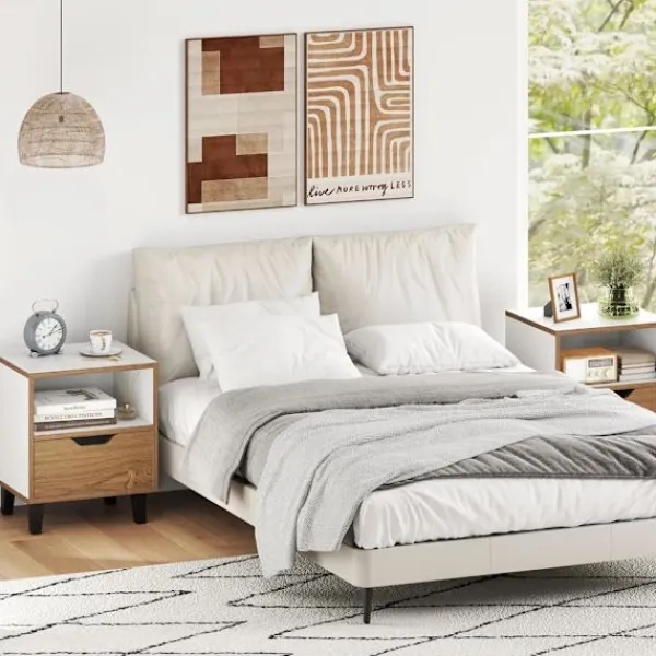 Detta funktionella sängbord kombinerar smart förvaring med stilren design. På bordsskivan får du plats med lampa, väckarklocka eller dekoration, medan det öppna facket ger enkel åtkomst till böcker, surfplatta eller andra vardagsprylar.