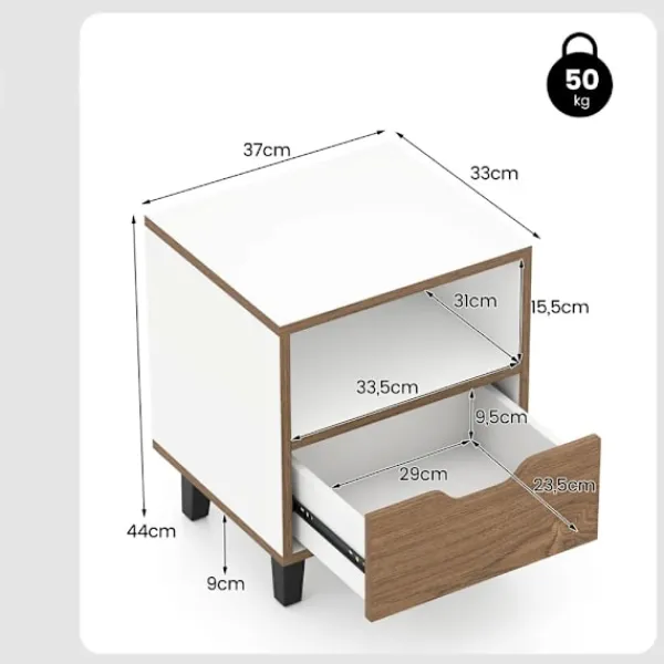– Typ: sängbord / nattduksbord med låda och öppet fack