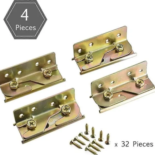 Innehåll: 4 par högkvalitativa sängrälsfästen, 32 skruvar