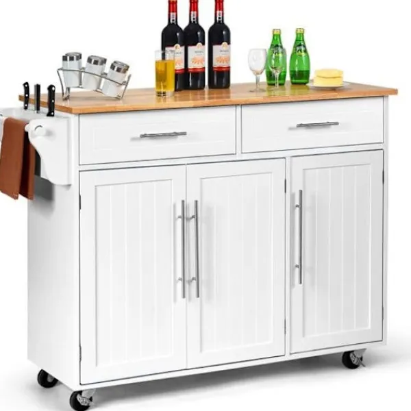 Upptäck denna praktiska och funktionella köksvagn. Den är utrustad med 4 kvalitetshjul för att göra den lättare att flytta. Med sina 3 justerbara hyllor, 2 stora lådor och magnetlås ger den optimal förvaring. Dessutom har den ett handduksställ och en knivhållare.