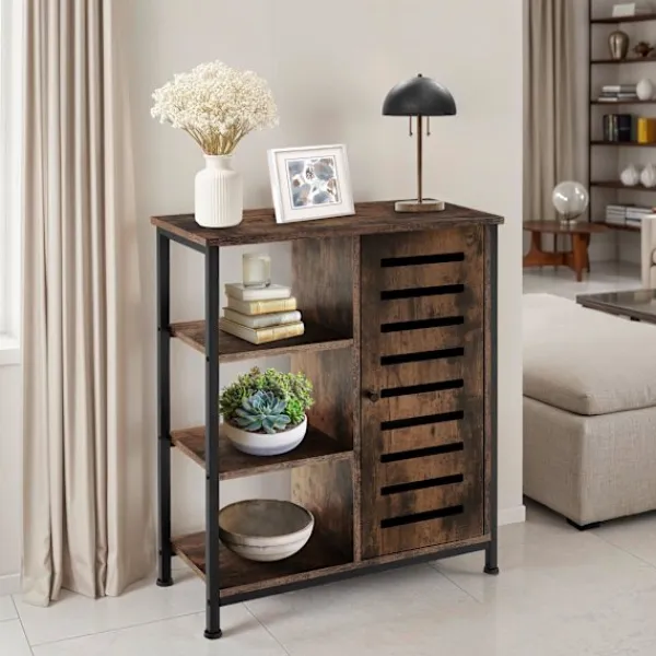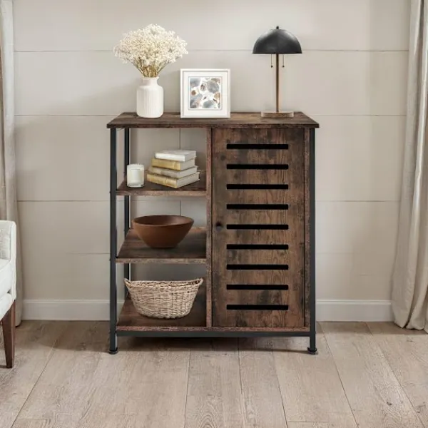 - Grov industriskänk med stor hylla och tre öppna fack