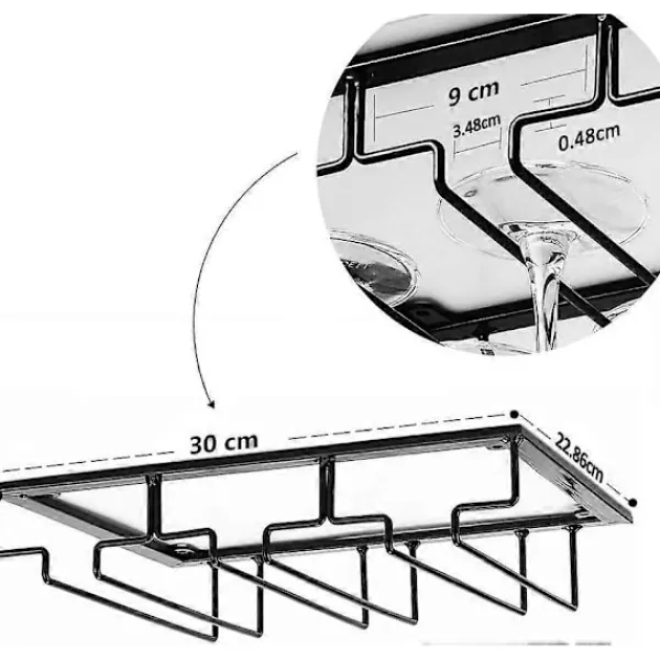 Storlek: Längd: 11,8 tum x Bredd: 9 tum x Höjd: 2,7 tum. Se till att vårt vinglasställ passar ditt skåp.