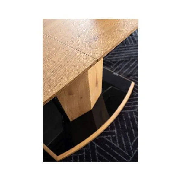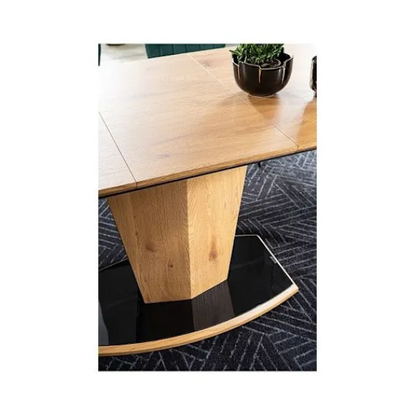 cent. / bord / pron. 120 (160) X80 bord: MDF + fanér, ram MDF + fanér + glas, färg: EK…b / EK…b + svart lack bord: MDF + fanér, ram: MDF + fanér + glas, färg: ek / ek + svart glansFärg på sits: EKMaterial av stelage: svart
