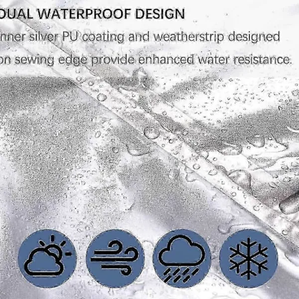 SLITSTARKT MATERIAL – Möbelöverdraget är tillverkat av robust 420D Oxford polyestertyg med inbyggd väderremsa på sömnadskanten och inre silver PU-beläggning, vilket ger ett övergripande väderskydd, lämpligt för långvarig hushålls- och kommersiell användning