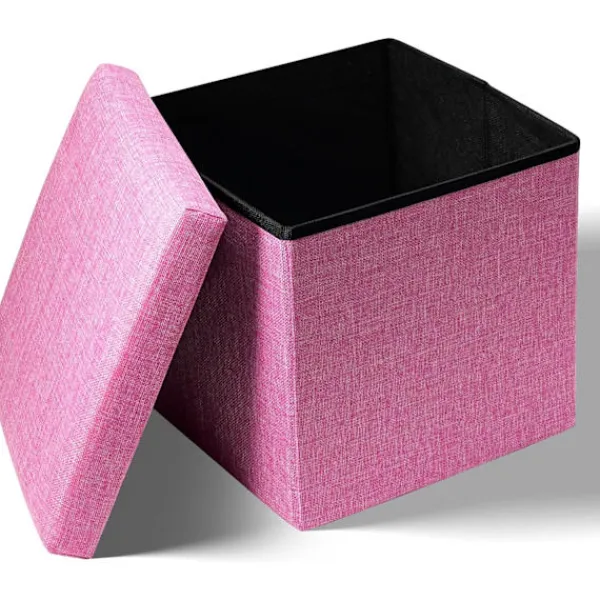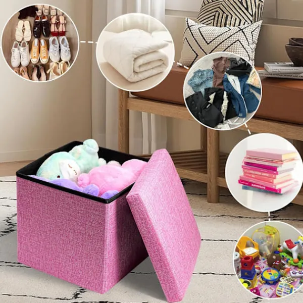 FÖRVARING ottomanlåda: Den kubformade lådan ger dig gott om utrymme att förvara diverse föremål, inklusive DVD-skivor, CD-skivor, böcker, pappersarbete, fotoalbum, surfplattor/små teknikprylar, säsongsdekorationer, leksaker/spel, nallebjörnar och ljus/värmare. De är också utmärkta förvaringslådor för kläder, filtar, sängkläder och skor. Perfekt för vardagsrum, matsalar, sovrum, tvättstugor, verandor och hallar. VIKTIG FOTPALL: Det vadderade locket gör också vår förvaringsenhet till en bekväm fotpall och till skillnad från andra skrymmande versioner är vår mycket lätt och kan enkelt flyttas runt för att ge dig komfort var du än sitter. ENKEL ATT MONTERA: Njut av din förvaringslåda inom några sekunder utan monteringsverktyg. Den platta packade ottomanska fälls utåt. Sätt bara in den svarta bottenplattan för att fixera lådan på plats och placera locket ovanpå. FLERANVÄNDNING: Vår förvaringslåda är en mycket bekväm sittplats. Perfekt för hektiska tider på året när många människor besöker samtidigt. Med vår vadderade låda behöver ingen sitta på golvet när sofforna och stolarna är upptagna. Dessutom kan den användas som sminkbord när man gör sig redo för utekvällar. Vår låda kan också användas som stege för att komma till exempelvis svåråtkomliga platser; när man hänger juldekorationer! FÄRG: Hetrosa gjord för att komplettera många hushållsstilar.