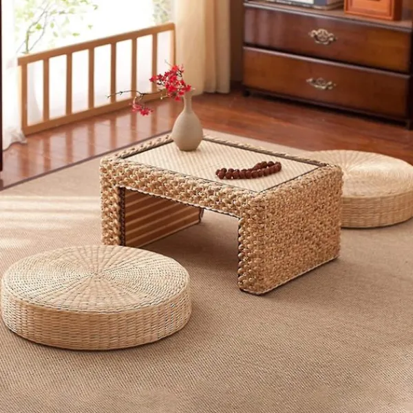 Tatami Kudde Andningsbar Brett Användbar Bekväm Rund Halmvävt Handgjort Kudde För Golv