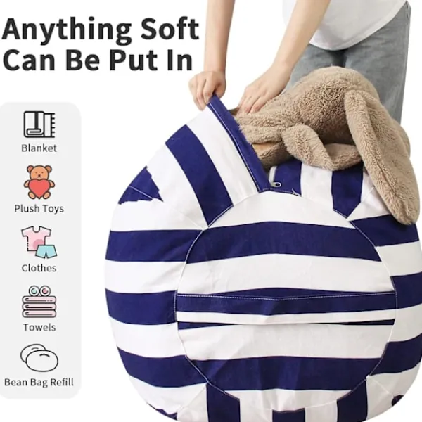 1 x Fylld Djurförvarings-Bönpåseöverdrag, Bomullsduk Bönpåseorganisatör för Barn och Vuxna Sovrum Grå 24″(Blå)