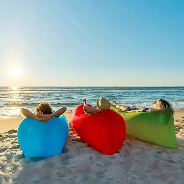 Du kommer aldrig mer att sakna en solstol eller plats på stranden, i trädgården eller på festivalen. Den populära uppblåsbara solstolen Air Bean/däck säljs nu på Satana.dk – slitstark, vattentät nylon och PE-plast så att den kan användas på alla typer av ytor, både inne och ute. Och det finns till och med gott om plats för två.