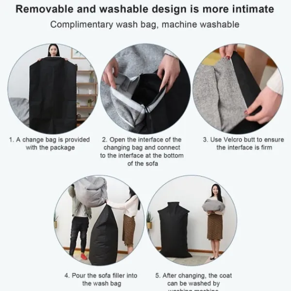 3. Bekväm och praktisk: Sittsäcksöverdraget är designat med ett handtag på toppen så att barn enkelt kan flytta dem, för att omsluta kroppen snabbare och bekvämare i enlighet med ergonomin.