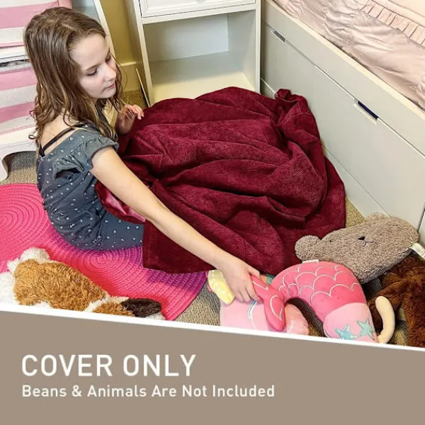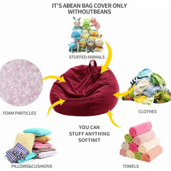 FÖRVARINGSLÖSNING FÖR ALLT MJUKT: Liten: 70cmx80cm, Medium: 80cmx90cm, Stor: 90cmx110cm, Extra stor: 100cmx120cm. Bönpåsefyllningar rekommenderas för komfort och estetik. Om du inte har tillräckligt med bönpåsefyllning, fyll den med skum, leksaker, textil, kuddar, filtar och allt annat som tar upp garderobsutrymme.