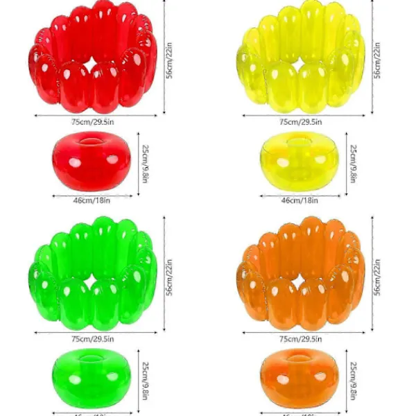 1. Uppblåsbar Jelly-stol: Som en del av Jelly-serien kombinerar denna uppblåsbara stol modern design med rolig och livfull estetik, vilket gör den till ett fashionabelt tillskott till alla utrymmen.