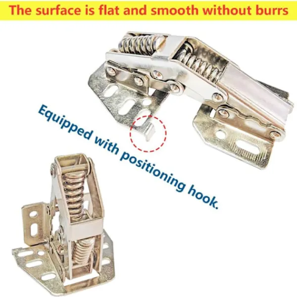 Kallvalsat stålmaterial: Gångjärnet är tillverkat av kallvalsat stål, som har god korrosionsbeständighet, är inte lätt att rosta och har hög hårdhet, kan bibehålla långvarig styrka och hårdhet och effektivt förlänga gångjärnets livslängd.