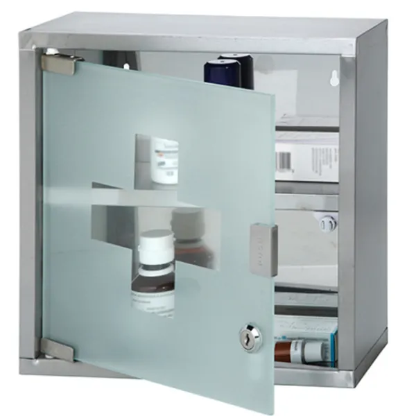 Detta låsbara medicinskåp erbjuder en stilren och säker lösning för att förvara dina mediciner. Skåpet är tillverkat av frostat glas och har två hyllplan i rostfritt stål, vilket ger det en modern och elegant look. Med måtten 30x12x30 cm är det tillräckligt kompakt för att passa i de flesta badrum men tillräckligt rymligt för att rymma alla dina viktiga mediciner.