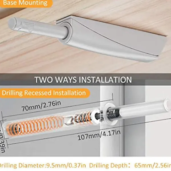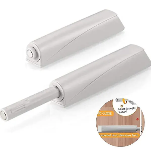 1. Tryck för att öppna: Inbyggd fjäderbelastad kolv, du kan helt enkelt trycka på dörren för att låsa eller låsa upp. Eliminerar behovet av handtag eller knoppar. Skapa det rena, sömlösa utseendet utan knoppar. Lämplig för användning med gångjärn utan självstängande funktion.2. Infälld installation & kraftfull fjäder: Fjäderinnerkärnan kan fällas in i skåpdörren separat. Spara utrymme och vackrare. Större och tjockare kraftig fjädermekanism har en tillräckligt stark spänning för att göra denna trycköppnare till ett exceptionellt hållbart och tidlöst val.3. Lång slaglängd med magnet: Lång slaglängd med inbyggd magnet, magnetkraften säkerställer en säker stängningspunkt som gör att dörren blir tätare förenad och inga fler ’drivande öppna’ dörrar. 4. Lätt att installera: Du kan installera den ultratunna strejken utan att borra skruvhål genom att använda det medföljande limmet. Kommer även med strejkskruvar. Magnetspetsen kan justeras 1-7 mm för att passa dörren tätt, så du behöver inte oroa dig för om det kan vara svårt att lokalisera fästet exakt.5. Vad du får2 x Tryck för att öppna dörrfångster; Basmonteringsskruvar