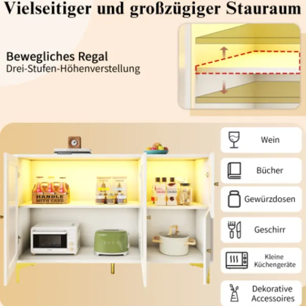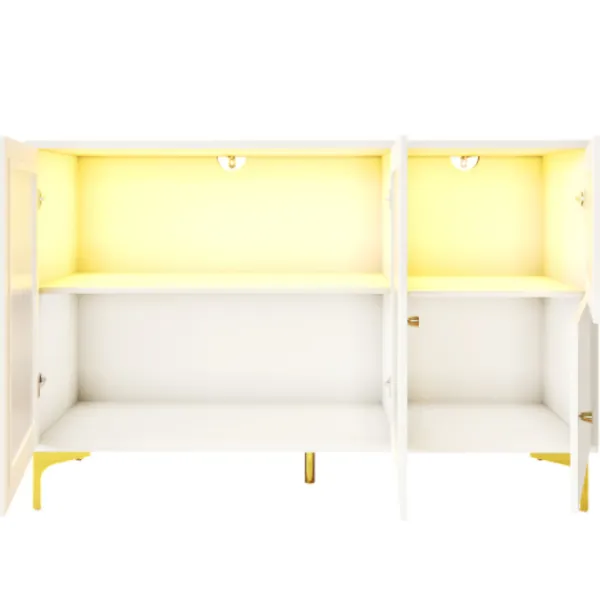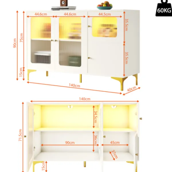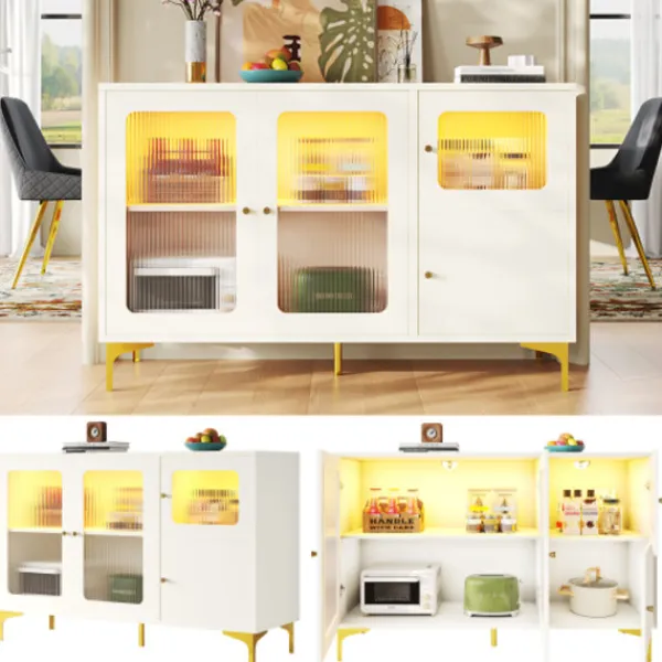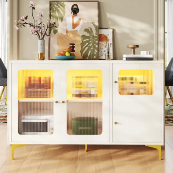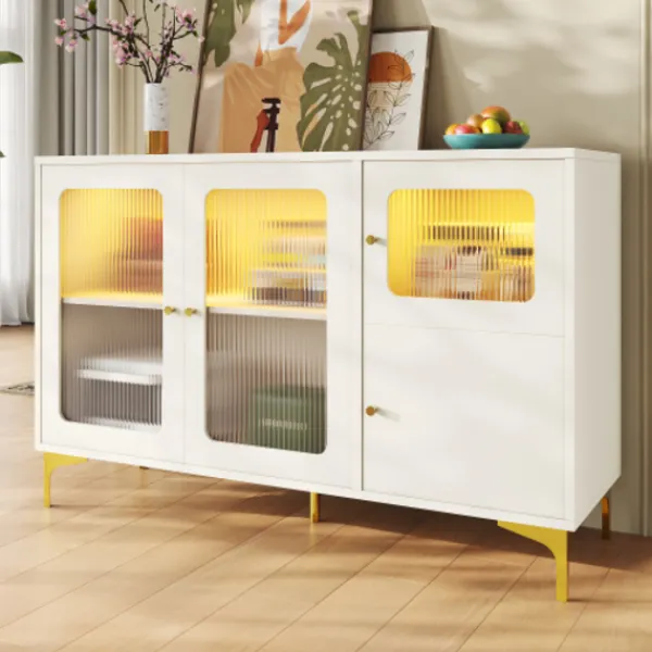 2. Gott om förvaringsutrymme. Utrustad med flerskiktsseparationsväggar och en kombination av dolda och synliga förvaringsutrymmen, kan den enkelt uppfylla de dagliga kraven. Den kan förvara tallrikar, vinflaskor, böcker eller dekorationer och är både praktisk och vacker. Det är ett perfekt val för förvaring och presentation i hemmet.