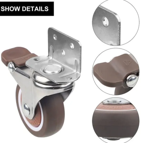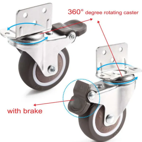 4x Hjul – 25 mm för möbler Små länkhjul med broms och monteringsplatta och skruvar