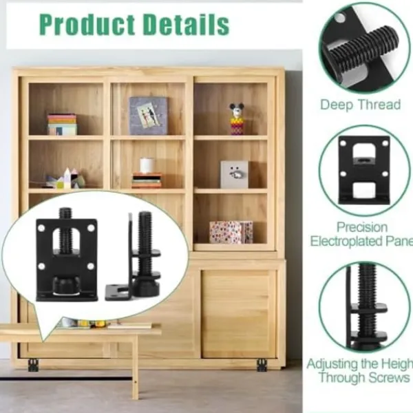 【Brett användningsområde】Justerbara fötter för att stödja skåp, bord, arbetsbänkar, soffbord, garderober, soffor, etc. är ett praktiskt verktyg för familjer eller kontor.