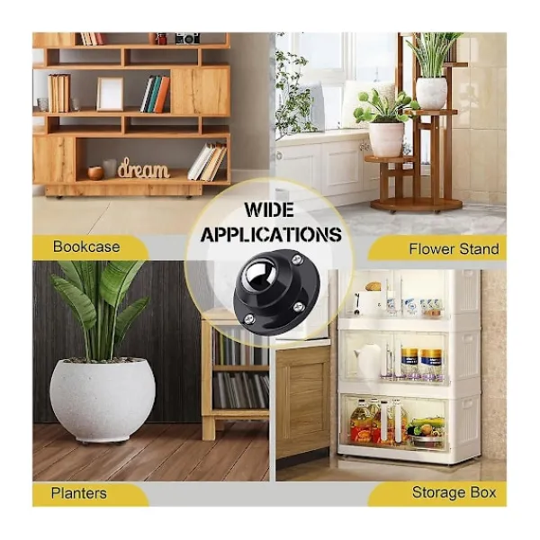Låg profil och 360 graders vridning, lågprofilhjul lägger inte till mycket höjd till möbler men kan bära mycket vikt. De större stålkulorna i ABS-fästet rullar smidigare än andra små kulor.