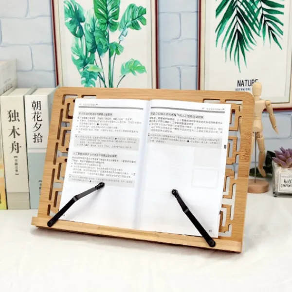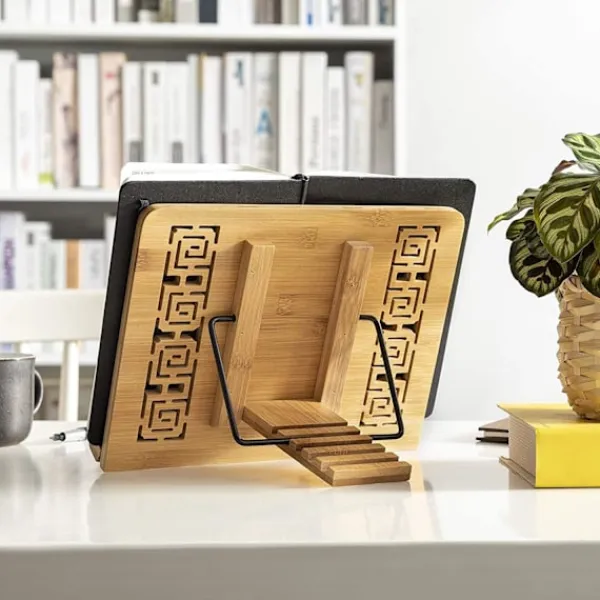 Multifunktionell bokhylla i bambu, perfekt för att stödja böcker i olika storlekar och stilar, surfplattor, ritböcker, kokböcker, noter, läroböcker, tabulatur, kataloger etc.