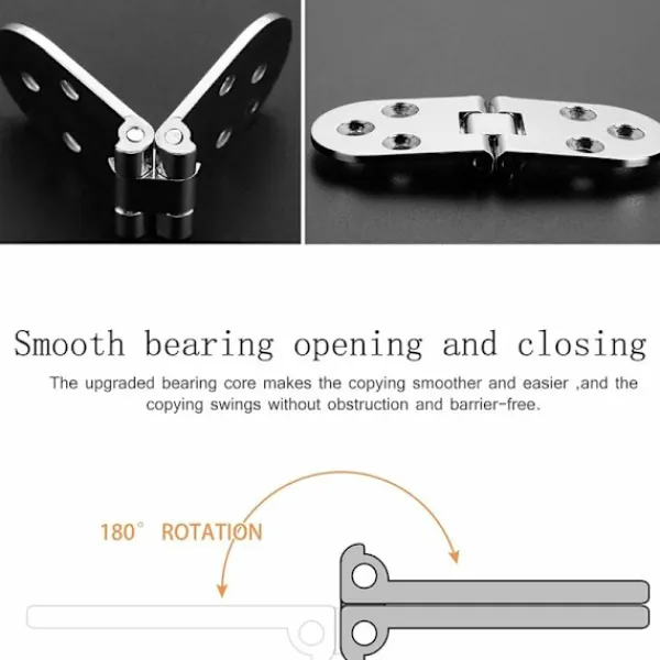 【Hållbarhet】Gångjärnet med avsmalnande hål förbättrar dess stabilitet, och designen med 180 graders fällbart gångjärn gör det mer flexibelt. Robust, lätt att öppna och stänga, med en livslängd på mer än 50 000 gånger, mycket pålitligt.