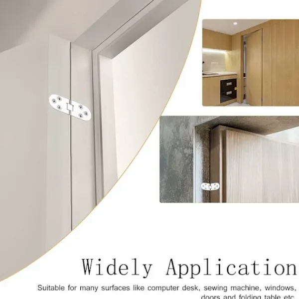 【Rund kant】Det 180 graders fällbara gångjärnet har en rund kant, vilket ger extra skydd för personer som sätter sig ner. Gångjärn monterat på dörrbladet, öppningsvinkel 180 grader, gångjärn är inte exponerade. Efter stängning av gångjärnen är dörrspringan mindre än 1 mm, kan användas för vikdörrar.