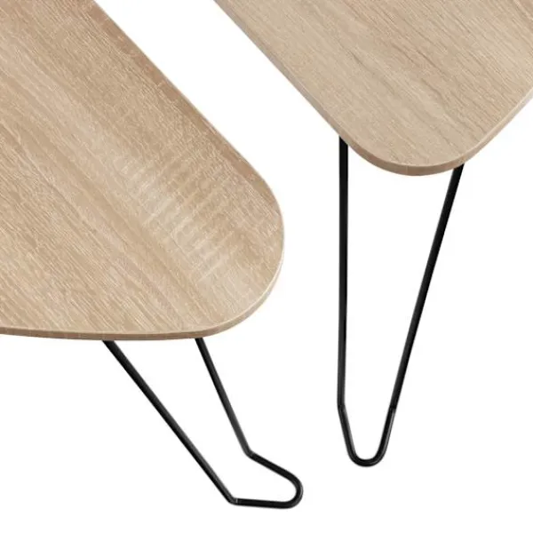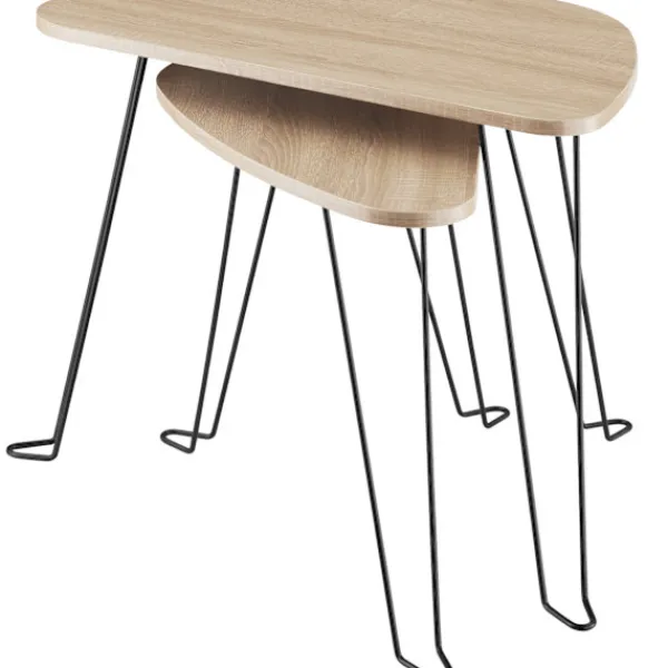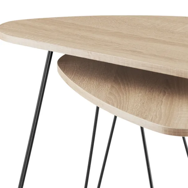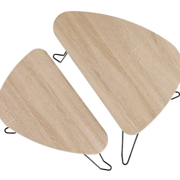 Med sin minimalistiska design är de två Richmond sidoborden från tectake en källa till ren entusiasm för alla fans av den industriella stilen. Den rundade formen på de tresidiga hyllorna med sina tunna ben och de kontrasterande materialen trä och stål frammanar en grov och elegant accent i varje rum. Förutom de optiska fördelarna har filigranfabriken god stabilitet och hög motståndskraft mot repor. När den inte används kan det mindre bordet skjutas in under det större för att spara utrymme – puristiskt chic för ditt hem: Richmond sidobord i två delar från tectake.