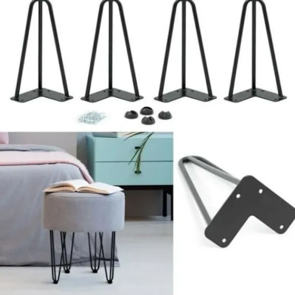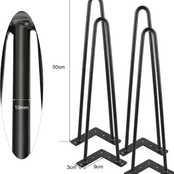 Hårnålsben i modern stil från mitten av århundradet. Utmärkt för gör-det-själv-möbelprojekt, lämplig för soffbord, matbord, designskrivbord, nattduksbord, pallar och till och med stolar, etc. Funktioner: 1. Enkla linjer, modern stil från mitten av århundradet och enkelhet. 2. Lämplig för möbler och bord, träbänkar, laptopbord och självdesignade produkter. 3. Hållbara och förstklassiga bordsben i stål, hållbara och starka. Säljs i set om 4 stycken. 4. Frostad svart beläggning, lätt att rengöra med färgäkthet. Beskrivning: Material: Stål. Benlängd: 50 cm. Ståldiameter. 10 mm. Färg: Betsad svart. Stil: Modern från mitten av århundradet. Antal: 4 stycken. Paketet innehåller: 4 x 50 cm hårnålsbordsben.