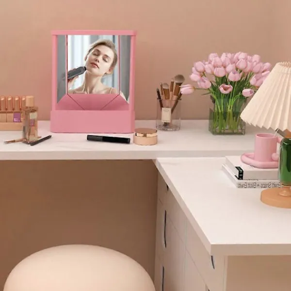 Stabil Bas: Sminkspegeln har en plastram, triangulär stöddesign, är stabil och halkfri och kan stå fritt på skrivbordet.