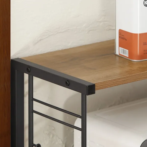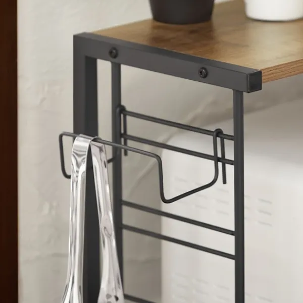 Denna mångsidiga köksvagn kombinerar vintagecharm med industriell robusthet. Perfekt som mikrovågsugnshylla, flaskförvaring eller flexibelt köksorganizer.