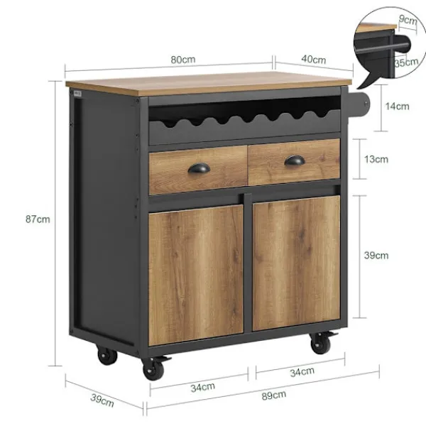 - Flexibel användning – fungerar som mikrovågsugnshylla, dryckesvagn eller förvaringsenhet