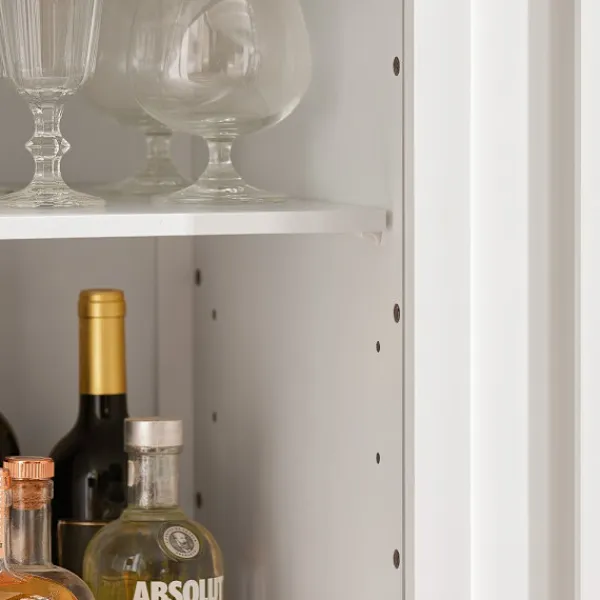 - Smart utrymmeslösning: Två stora lådor, två stängda skåp och fyra vinhyllor