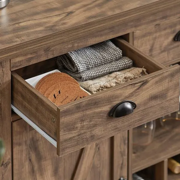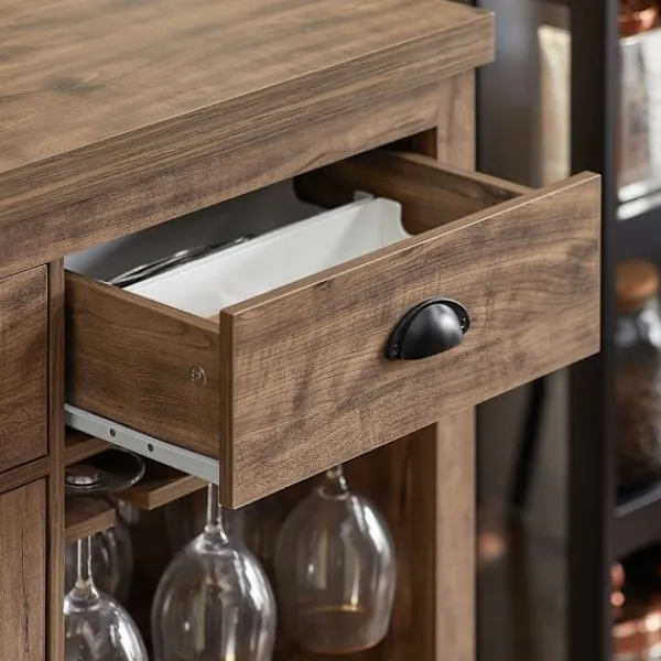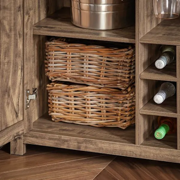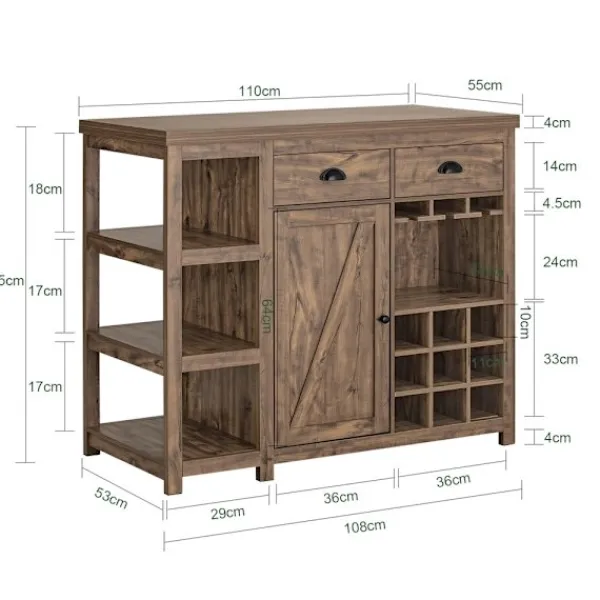 Denna eleganta bruna skänk i lantlig stil förvandlar ditt kök med sitt öppna utseende. Perfekt för gourmeter som älskar att laga mat.
