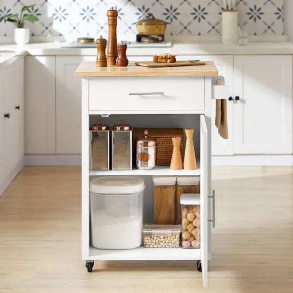 Denna mångsidiga köksvagn kombinerar smart förvaring med elegant design, perfekt för kök, vardagsrum eller hall. Huvudfunktioner: