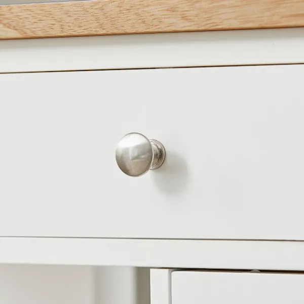 - Tre rymliga hyllor för tallrikar, dukar och köksredskap