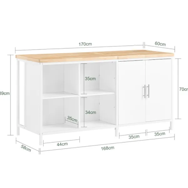 - Mångsidig användning: Fungerar som sideboard, arbetsbänk eller högt bord