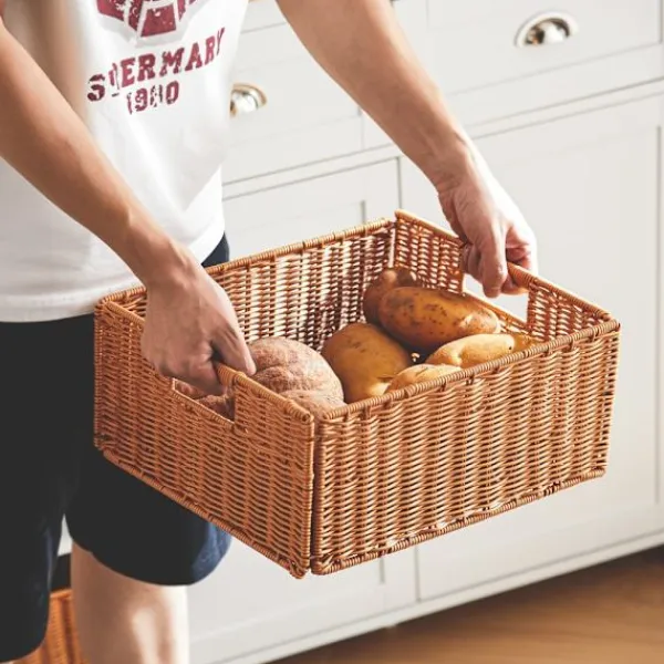 Skåpet erbjuder generöst utrymme för gourmetkvällar eller avslappnade samtal över ett glas vin. I det övre hörnet finns nio små fack speciellt utformade för vinflaskor. Nedanför placeras två öppna fack med två praktiska rottingkorgar för flexibel organisering. Tack vare högkvalitativa material och solid konstruktion tål skåpet vardagligt slitage utmärkt och behåller sitt fina utseende länge.