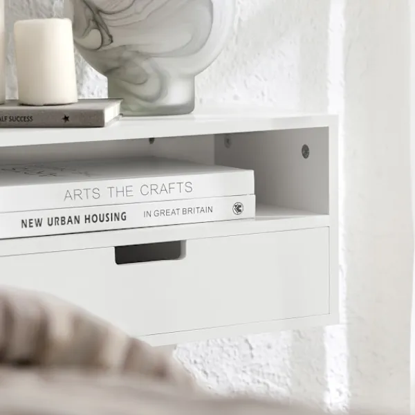 Nattbordet är inte bara estetiskt tilltalande, det är också mycket bekvämt att använda. Den inbyggda lådan med sina smidiga skenor är gjord för att förvara alla dina föremål på ett noggrant och organiserat sätt. Dess kompakta storlek gör det perfekt för mindre utrymmen, samtidigt som den robusta konstruktionen säkerställer stabilitet och hållbarhet för vardagligt bruk. Produkten är utvecklad och testad för säkert hemmabruk.