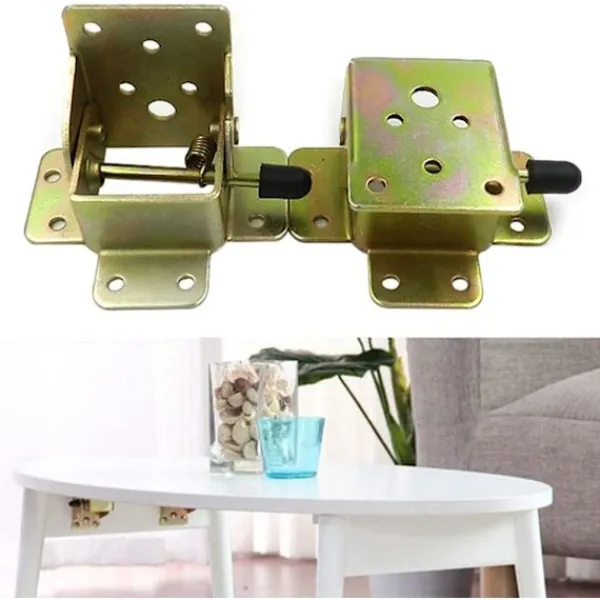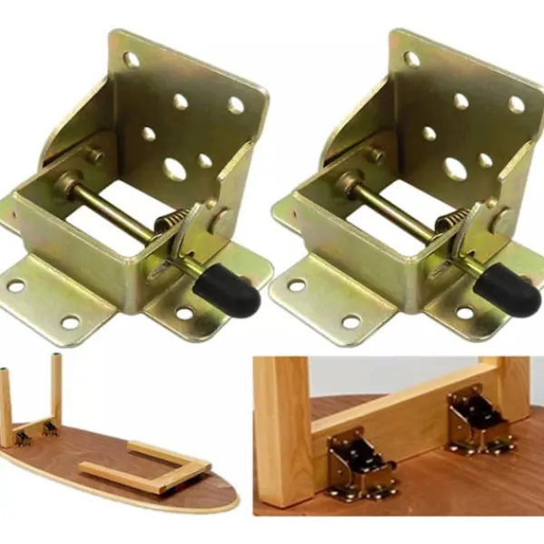 2) Lätt att vika och självlåsande för extra säkerhet, dessa konsoler har ett ”kraftlås” aktiverat av en fjäder som låser i öppet läge för mer stabilitet. När skrivbordet eller bänkskivan inte används, tryck bara på spärren för att fälla ihop den och spara utrymme.