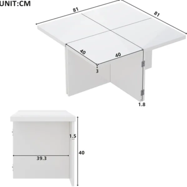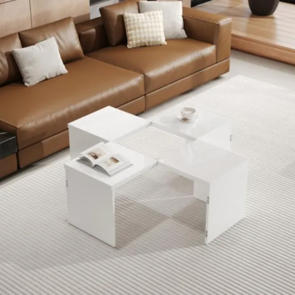 Detta mångsidiga DIY-bordset har designats för moderna, kreativa hem och kommer att omdefiniera ditt vardagsrum. Kollektionen består av fyra små bord som mäter 81 x 81 x 40 cm med en slät högglansyta som utstrålar elegans och modern stil.