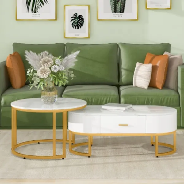 Elegant: Kombinationen av en guldmetallram och en elegant yta med ett marmormönster (inte marmor, inte skiffer) ger elegans till vardagsrummet och imponerar samtidigt på besökare.