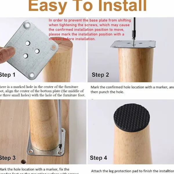[Hög kvalitet] Med hög kvalitet är varje ben tillverkat av 100 % ek för att säkerställa en solid och lång livslängd. Belagd med lack för att bevara träets naturliga färg./ Belagd i färg för att matcha dina möbler. [Enkel att installera] Denna produkt levereras med förborrade hål och skruvar, så installationen är snabb och enkel för alla färdighetsnivåer. Lätt. Innan du installerar basplattan på möbelbenen och innan du fäster träbenen på installationsytan med skruvar, bekräfta installationspositionen och markera den med en markör för att förhindra att installationspositionen flyttas när skruvarna dras åt. [Golvskyddsmatta] 4 starka golvskyddsmattor av gummi kan inte bara hålla skåpet i originalskick, inte lätt att glida, öka säkerheten, utan också effektivt förhindra att golvet repas. [Användningsområde] Stabil struktur räcker för att möta dina dagliga behov, lämplig för soffor, soffbord, sängar, sängbord, låga pallar, fåtöljer, skåpbord, sidobord, skåp, matbord, skrivbord, datorbord, bänkar, skåp, kontorsmöbler, etc.