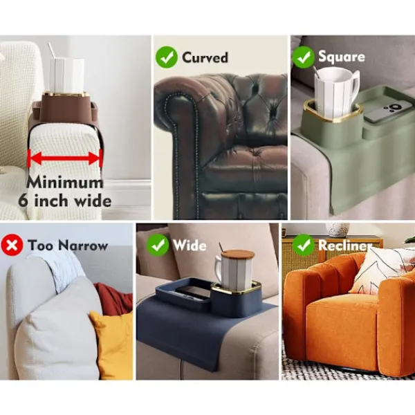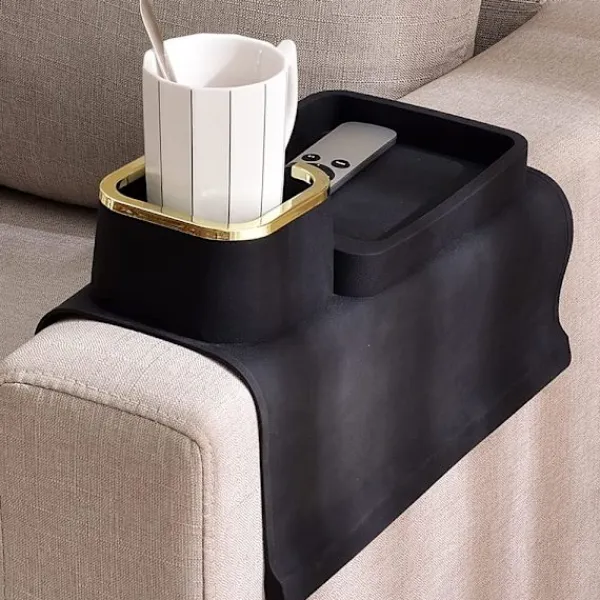 BEKVÄMLIGHET VID DIN SOFFA — Är du någon som spenderar mycket tid i soffan? Tycker du att det är svårt att hålla dina drycker, mobiltelefon och fjärrkontroll på ett ställe istället för att hitta dem utspridda överallt, vilket orsakar oreda? Vi presenterar Silikon Soffa Arm Mugghållare – en praktisk lösning för dig att ha allt du behöver inom räckhåll medan du njuter av att titta på TV – var lat, håll dig organiserad och lev smart.UNIK FUNKTIONELL DESIGN — Vår mugghållare för soffa är designad för att passa soffor med armstöd som mäter minst 15 cm breda. Med en dryckeshållare för soffa som rymmer en kaffekopp, läskburk, ölsejdel eller vilken kopp som helst som är upp till 9 cm bred; denna recliner-mugghållare har en stor bricka som enkelt rymmer din telefon, hörlurar, fjärrkontroll eller snacks.STADIGA ANTI-SLIP och ANTI-SPILL MUGGHÅLLARE FÖR SOFFA – Tillverkad av silikon av högsta kvalitet, denna soffbricka med mugghållare är försedd med fyra metallrör i botten som kommer att greppa tag i möbelns arm och sitta fast med liten eller ingen rörelse. Vår mugghållare för recliner är supertålig, är inte bräcklig som billiga utan erbjuder mer stabilitet, kommer inte att gå sönder som plast och kommer säkert att hålla länge.MÅNGSIDIG SOFFA MUGGHÅLLARE BRICKA – Denna kompakta bärbara armstöds-mugghållare är en användbar soffaccessoar som är ett måste för varje hem! Du kan använda soffdryckeshållarbrickan hemma, eller på kontoret, eller så kan du också använda den i din bil när du är på språng.GENOMTÄNKT GÅVA TILL DINA NÄRA OCH KÄRA – Gör livet för alla soffälskare enklare genom att lösa det största problemet med att hålla drycker eller snacks i soffan – ge dem dessa unika och funktionella armstöds-mugghållare för soffan! Dessa soffmugghållare är en användbar present till din familj och dina vänner!