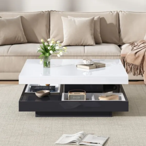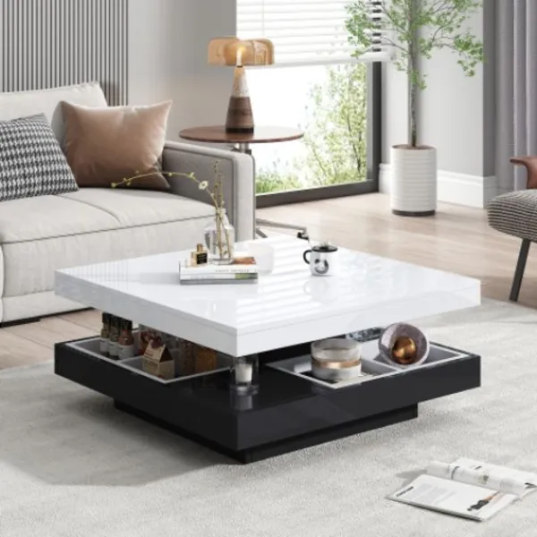 Detta multifunktionella, dubbla soffbord har en 360-graders roterande övre vit bordsskiva för att passa dina olika behov.