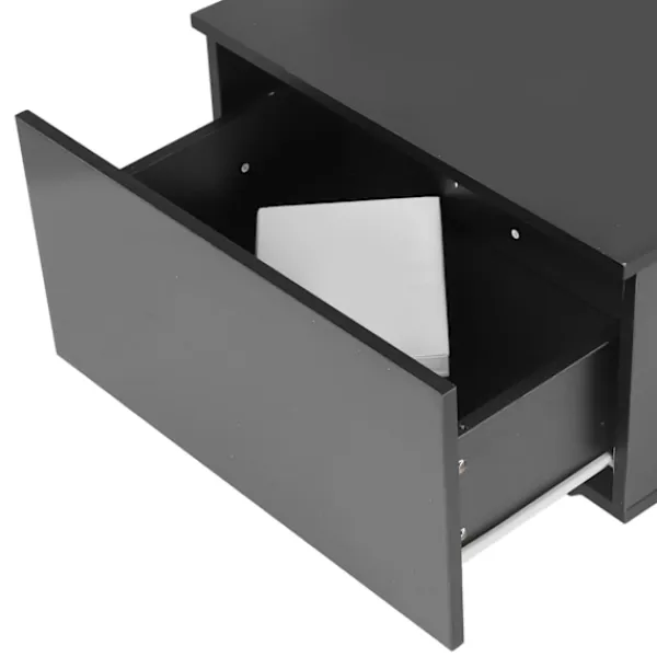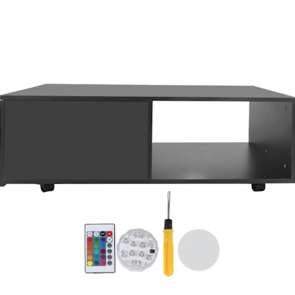 Funktion: 1. Gott om förvaringsutrymme och en rymlig bordsskiva ger tillräckligt med utrymme för pyssel, fjärrkontroller etc. Den nedre hyllan och lådorna kan spara utrymme och hjälpa till att hålla rummet städat. 2. Färgglada atmosfärsljus, 16-färgs LED-lampor, utbytbara, skapar en mängd olika atmosfärer, fjärrkontroll, välj det ljus som passar ditt humör som du vill. 3. Lätt att montera, alla delar är numrerade och monteringshål är reserverade. Du kan snabbt montera soffbordet genom att hänvisa till manualen och dela det roliga med DIY med din familj. 4. Robust och hållbart, tillverkat av högkvalitativ densitetsskiva, materialet är slitstarkt och reptåligt, har en lång livslängd, har ingen speciell lukt och är ofarligt för barn och gravida kvinnor. 5. Det har ett brett användningsområde, inte bara vardagsrummet, utan den stilrena och koncisa designen gör att denna produkt används flitigt i sovrum, butiker, hotell, mötesrum, kaféer och andra tillfällen. Specifikation: Artikeltyp: Soffbord Material: Densitetsskiva Färg: Som visas på bilden Produktstorlek: Ca. 95x55x33.5cm / 37.4×21.7×13.2in Vikt: Ca. 22000g / 776oz Lastbärande: Ca. 50kg / 110.2lb Produktyta: högglans LED-ljus: 16 färger LED-lampa Batteri: 3 x AAA-batterier (ingår ej) Fjärrkontroll Batteri: 1 x CR2025-batteri (ingår). Paketlista: 1 x Soffbord 4 x Hjul 4 x Styrskena 3 x Påse med fästskruv 1 x LED-ljus (Batteri ingår ej) 1 X LED-ljus Rund dubbelsidig tejp 1 x Fjärrkontroll 1 x Dubbelsidig skruvmejsel 1 x Monteringsanvisning Obs: 1. Tillåt 1‑2in fel på grund av manuell mätning. Tack för din förståelse. 2. Bildskärmar är inte kalibrerade likadant, objektfärg som visas på foton kan skilja sig något från det verkliga objektet. Ta den riktiga som standard. 3. Observera att du kommer att få flera reservdelar, du måste montera själv.