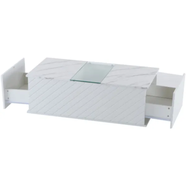 ELEGANT DESIGN: Vitt soffbord med marmoroptik, vilket ger ett lyxigt och modernt utseende.