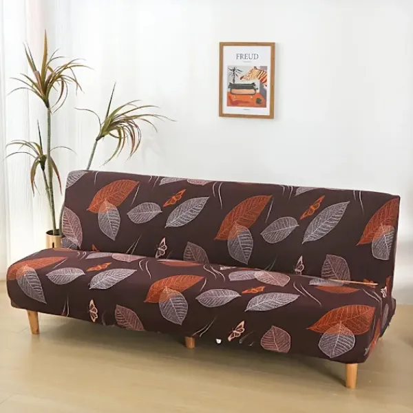 1 st Brunt Lövmönster Stretch Sofföverdrag – Passform, Dammtätt, Lätt att Rengöra, Elastiskt Tyg, Retrodesign, Användning Året Runt för Fällbara Bäddsoffor